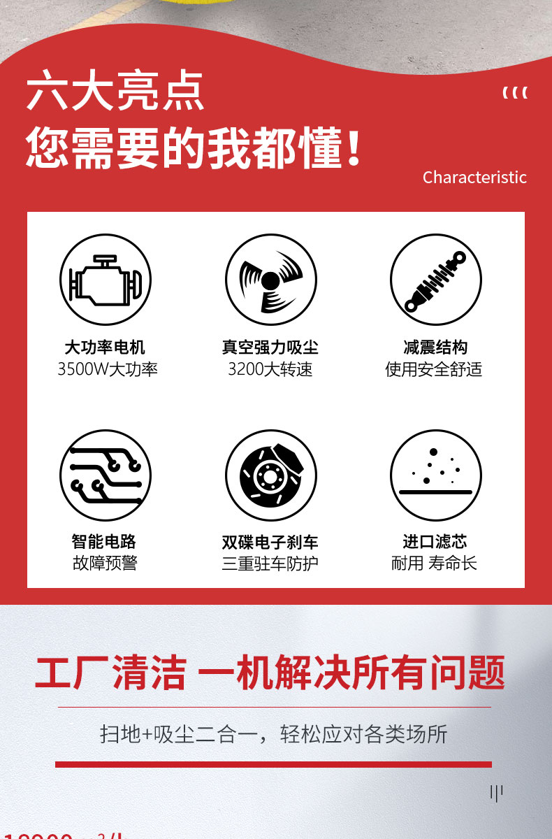 - HRD-1000手推式電動(dòng)掃地車(chē)精巧輕便,清掃寬度為1000mm,可連續(xù)工作3-4個(gè)小時(shí),灰塵 石子 落葉 煙頭煙灰 木屑 瓜果等一掃而凈,特別適合煤礦、水泥廠、雕刻廠、面粉廠、建材廠、金屬冶煉廠、工廠車(chē)間、商場(chǎng)、車(chē)站、學(xué)校、機(jī)場(chǎng)外圍、廣場(chǎng)公園、景區(qū)等場(chǎng)所使用。