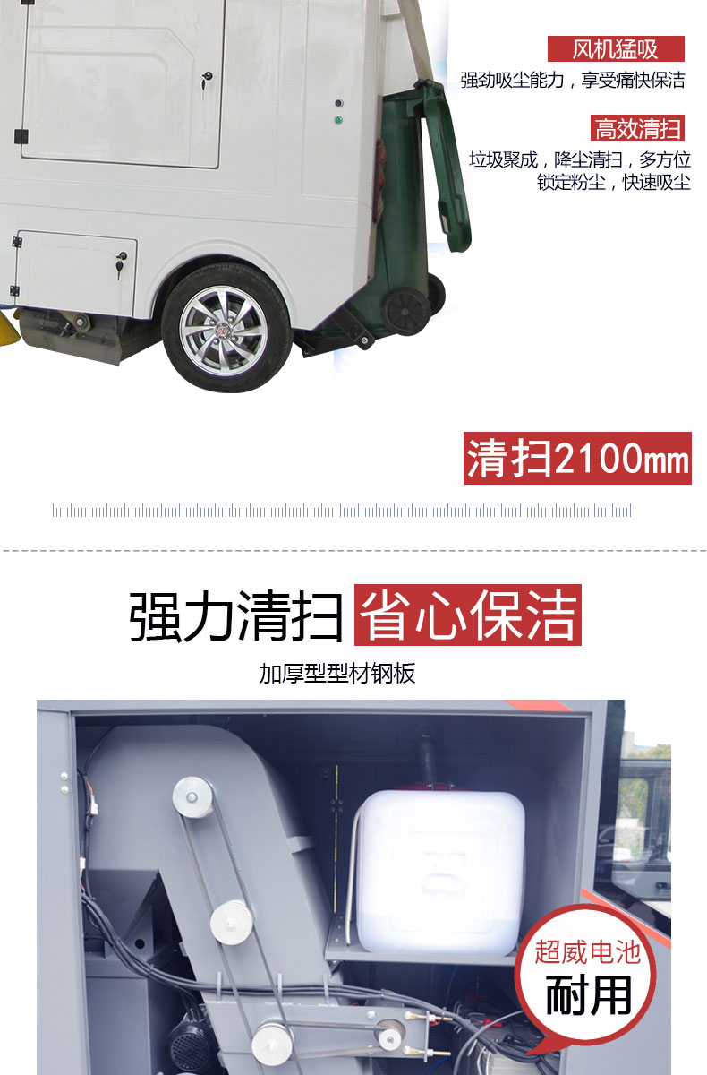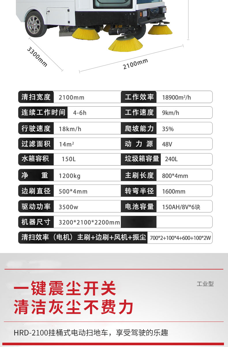 HRD-2100全封閉掛桶式掃地車(chē)擁有國(guó)內(nèi)先進(jìn)的清掃拋甩技術(shù),塵箱利用率理論值很高,清掃寬度可達(dá)2100mm,可連續(xù)工作6-8小時(shí),灰塵 石子 落葉 煙頭煙灰 木屑 瓜果等一掃而凈,特別適合煤礦、水泥廠、雕刻廠、面粉廠、建材廠、金屬冶煉廠、工廠車(chē)間、商場(chǎng)、車(chē)站、學(xué)校、機(jī)場(chǎng)外圍、廣場(chǎng)公園、景區(qū)等場(chǎng)所使用。
