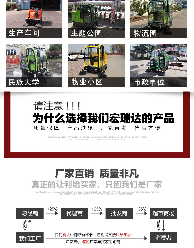 - 宏瑞達(dá)新能源電動(dòng)清掃車(chē)采用滾刷五聯(lián)動(dòng)式清掃,更大的增加了清掃效率和清掃潔凈度,清掃寬度可達(dá)2280mm,可以連續(xù)工作6-8小時(shí),特別適合煤礦、水泥廠、雕刻廠、面粉廠、建材廠、金屬冶煉廠、工廠車(chē)間、商場(chǎng)、車(chē)站、廣場(chǎng)公園、景區(qū)等場(chǎng)所使用。