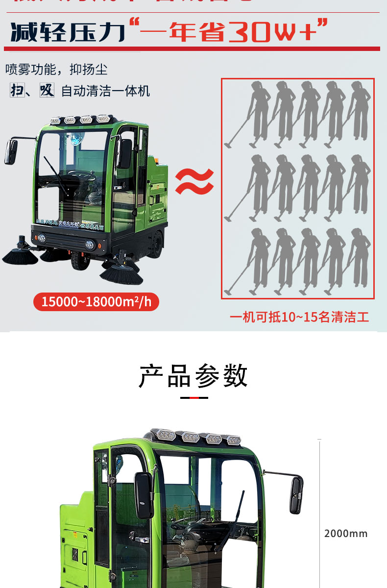 - HRD-2000S全封閉駕駛式掃地車配置雙風(fēng)機(jī)系統(tǒng),具有強(qiáng)大的吸塵能力,清掃寬度大可達(dá)2米,一小時(shí)工作量相當(dāng)于6-8名清潔工的工作量,可連續(xù)工作6-8小時(shí),特別適合煤礦、水泥廠、雕刻廠、面粉廠、建材廠、金屬冶煉廠、工廠車間、商場(chǎng)、車站、廣場(chǎng)公園、景區(qū)等場(chǎng)所使用。