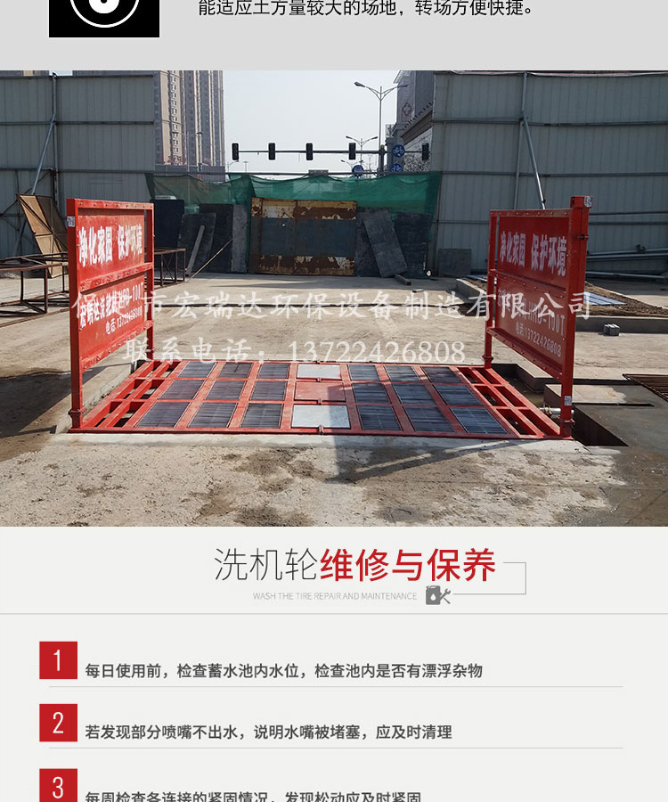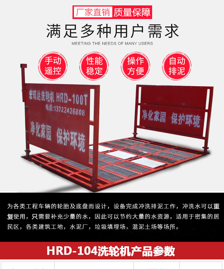 HRD-104工程車(chē)洗輪機(jī)可自動(dòng)完成沖洗、排泥的工作,沖洗用水可重復(fù)使用,100T以下各類(lèi)工程車(chē)和垃圾運(yùn)輸車(chē)都可以承載,有自動(dòng)、遙控和手動(dòng)三種控制,特別適用于各類(lèi)建筑工地、礦業(yè)工場(chǎng)、水泥制品廠、煤礦、發(fā)電廠、垃圾填埋廠、高檔社區(qū)等場(chǎng)所的進(jìn)出車(chē)輛清洗,從而達(dá)到無(wú)粉塵污染的優(yōu)良工程,二期安裝運(yùn)輸方便,可適用各種工地頻繁轉(zhuǎn)場(chǎng)的需要。