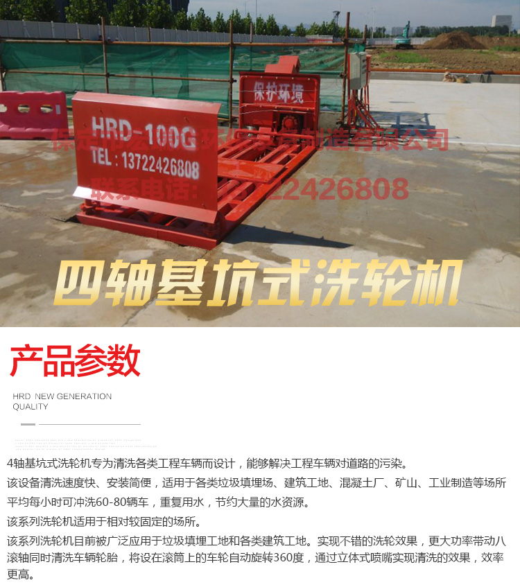 HRD-100G-A四軸基坑式洗輪機 有自動、遙控和手動三種控制,可自動完成沖洗的工作,清洗時間短,使用周期長,可以隨時轉場,承重力強,特別適用于各類建筑工地、礦業(yè)工場、水泥制品廠、煤礦、發(fā)電廠、垃圾填埋廠、工業(yè)制造、高檔社區(qū)等場所的進出車輛清洗,安裝運輸方便,可適用各種工地頻繁轉場的需要。