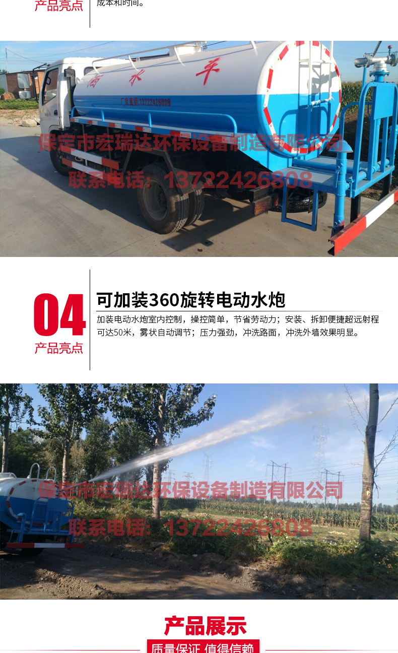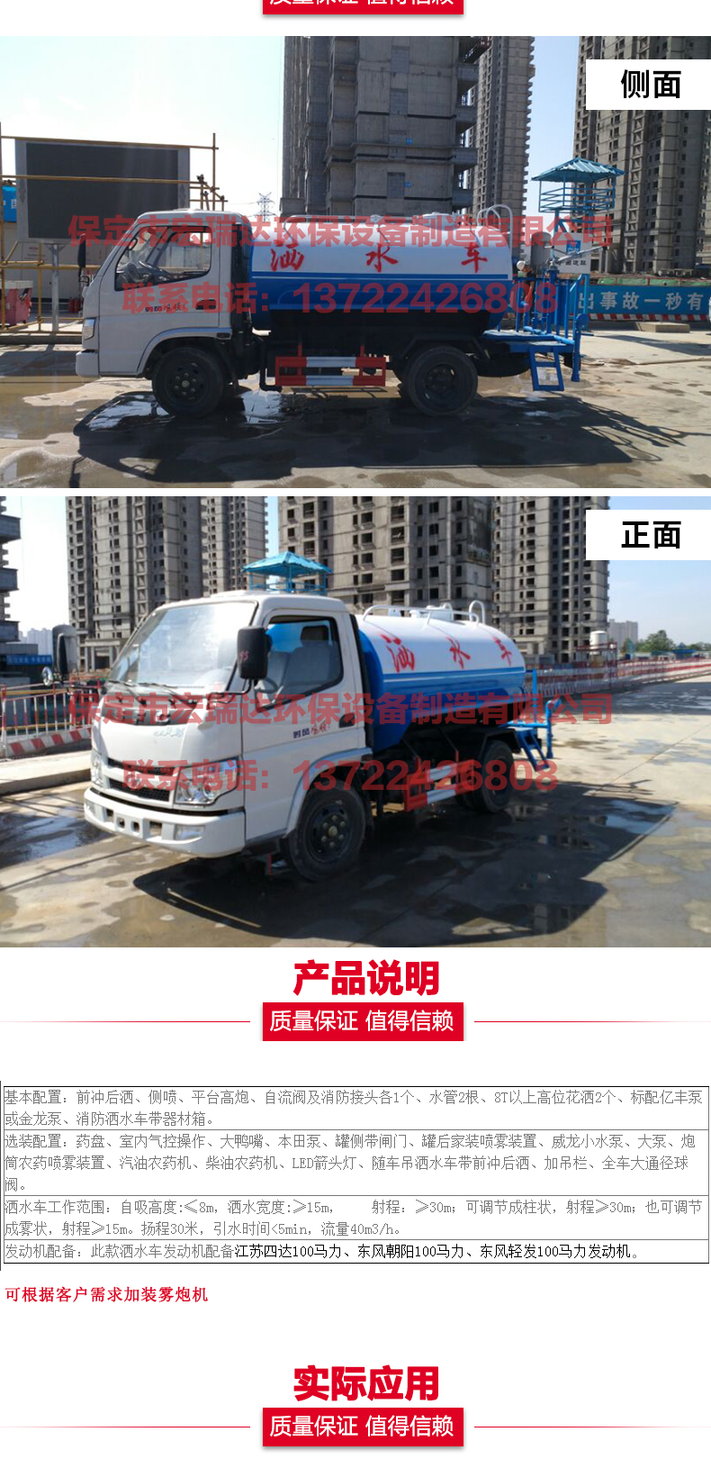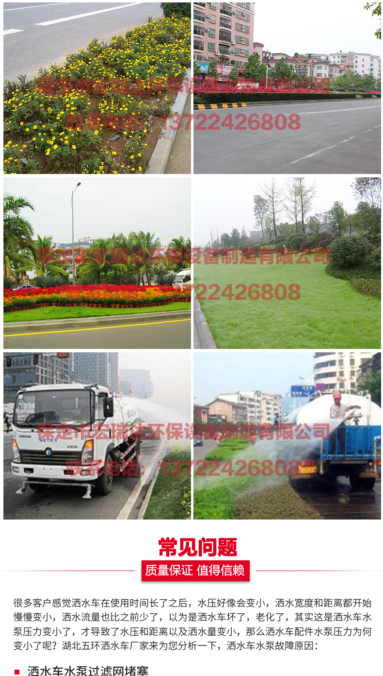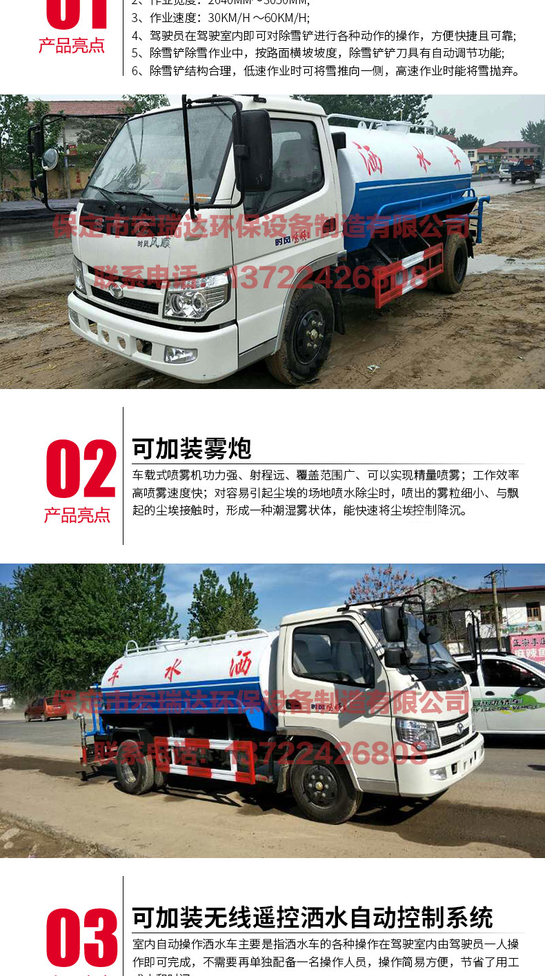 灑水車適合于各種路面沖洗,樹木、綠化帶、草坪綠化,道路、廠礦企業施工建設,高空建筑沖洗。具有灑水、壓塵、高、低位噴灑,農藥噴灑、護欄沖洗等功能,還具有運水、排水,應急消防。