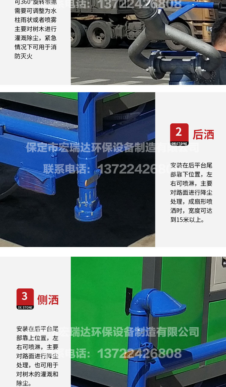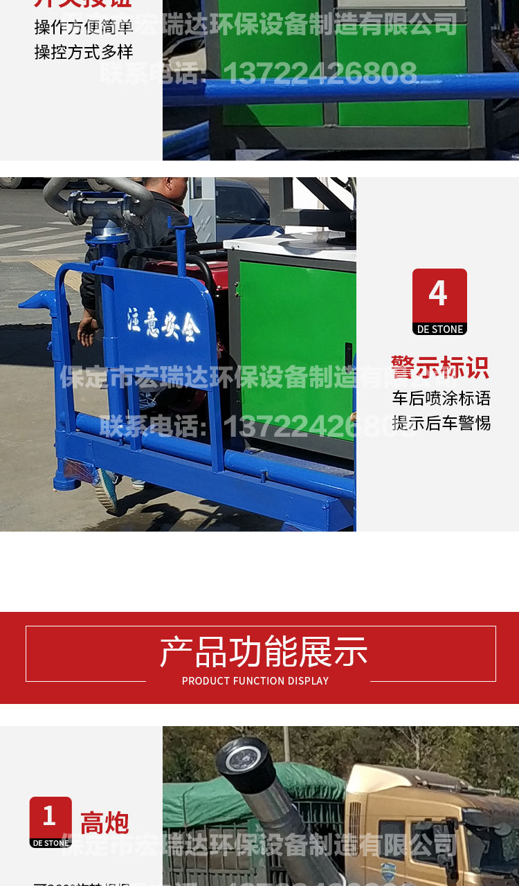 - 高端清洗車,主要用于城市人行道、輔道、路沿石的快速沖洗和保潔,以及城市小廣告清 理、果皮箱和垃圾桶沖洗、地面污垢去除、地磚還原本色、公交站牌沖刷、公共廁所沖洗等。 對人行道和輔道進行快速保潔。車輛體積小巧,重量輕,通過性強,且不會對人行道地磚,井 蓋等其他公共設施造成損壞。采用優質加重型電動四輪車底盤操作簡單,載重性好,通過性 強,普通環衛工人即可操作。