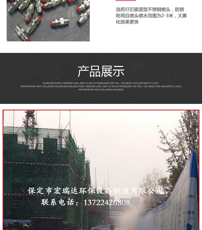 - 圍擋噴淋系統(tǒng)的構(gòu)成是由PPR水管、直通、三通、彎頭等組成水流通的管路,水箱提供噴淋水源,多級(jí)泵給予輸送動(dòng)力,電腦控制器控制整個(gè)系統(tǒng)。