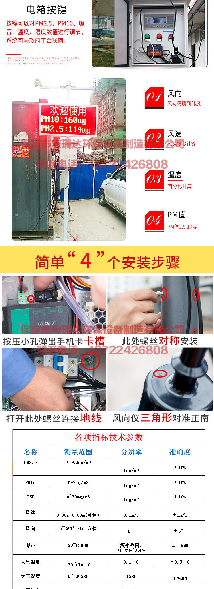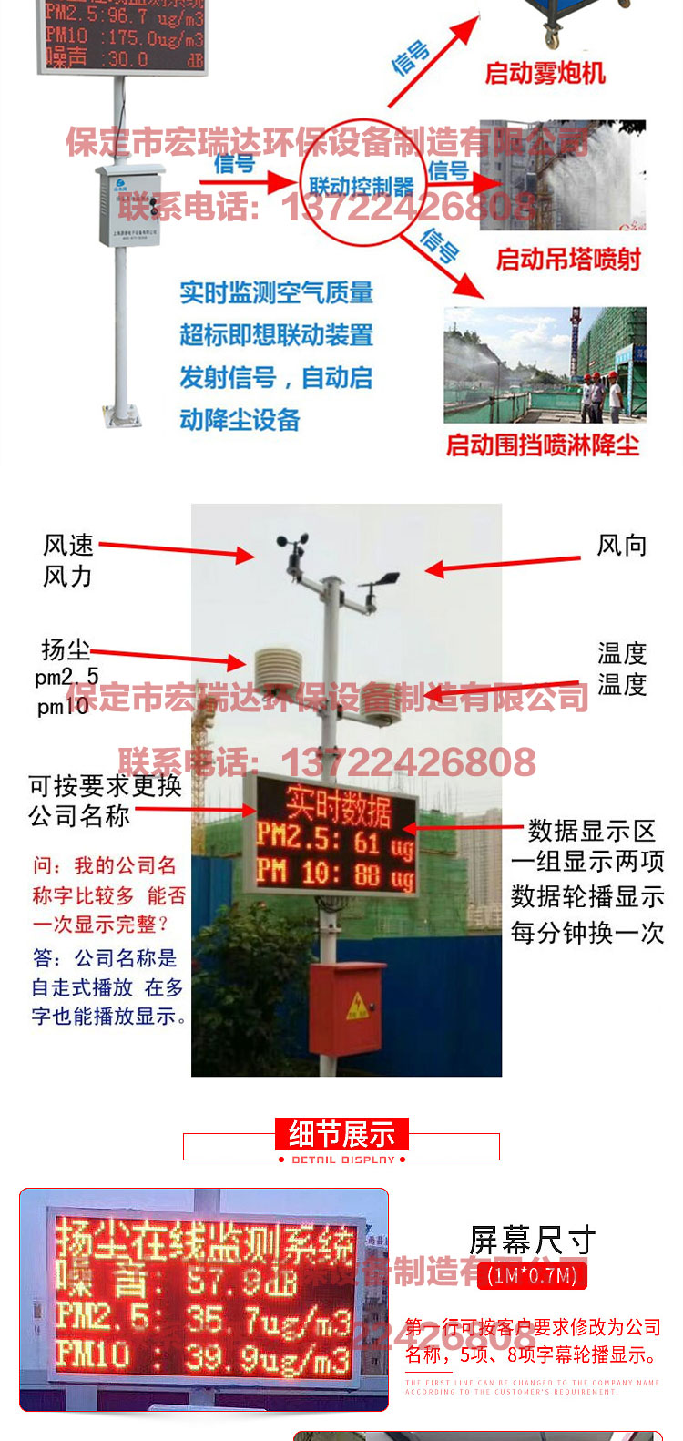 2 4小時在線揚塵監測系統是保定宏瑞達環保設備制造有限公司為改善空氣質量自主研發的24小時戶外揚塵監控的一個終端設備。本設備實現多維一體化,除了可以實現揚塵監控以外,還可以測TSP