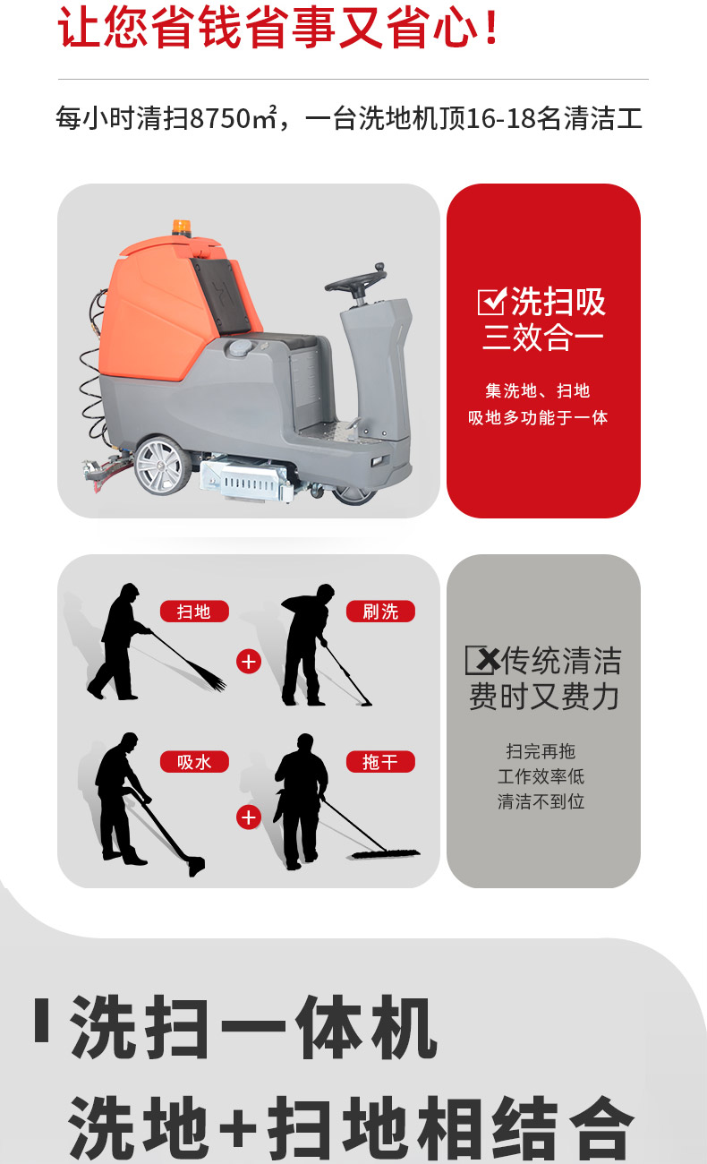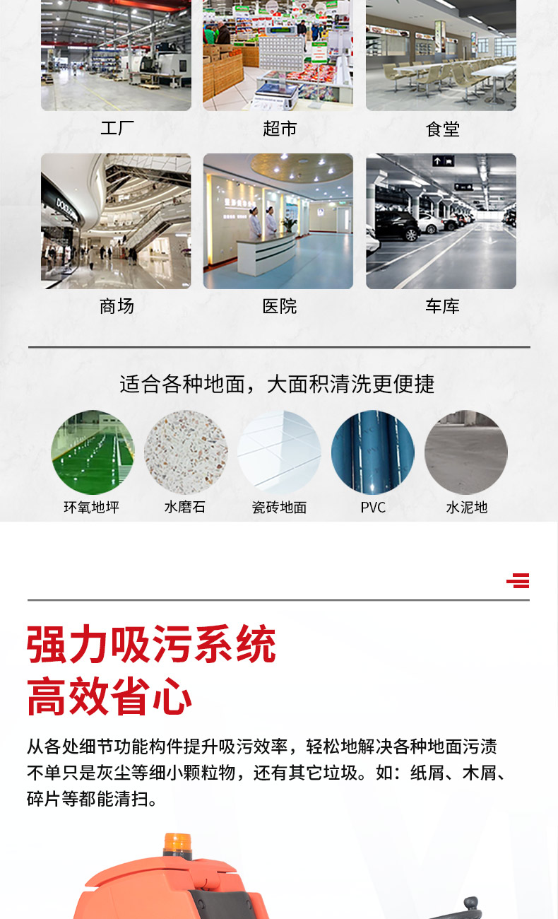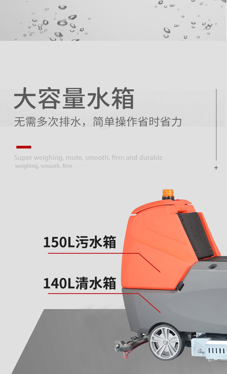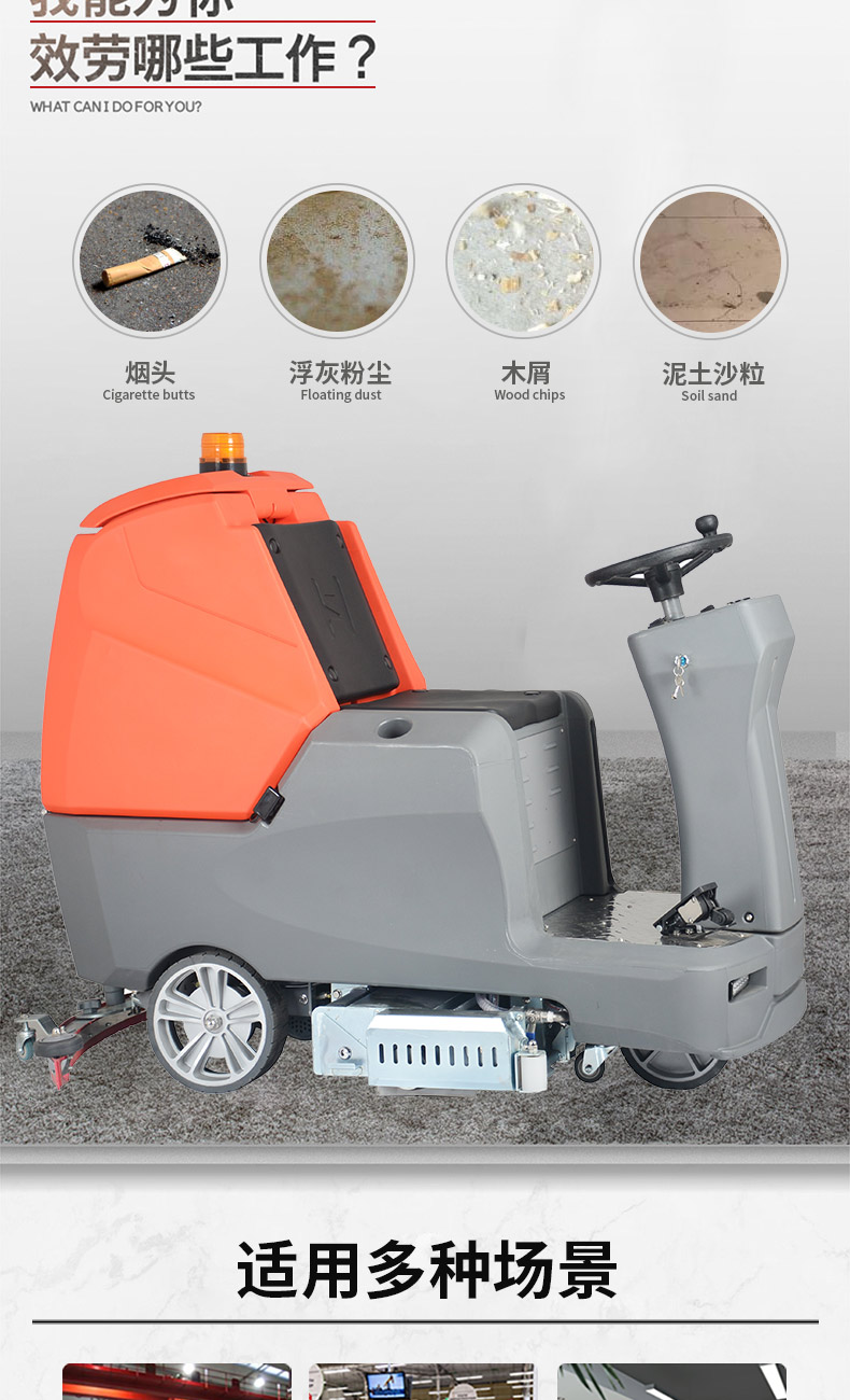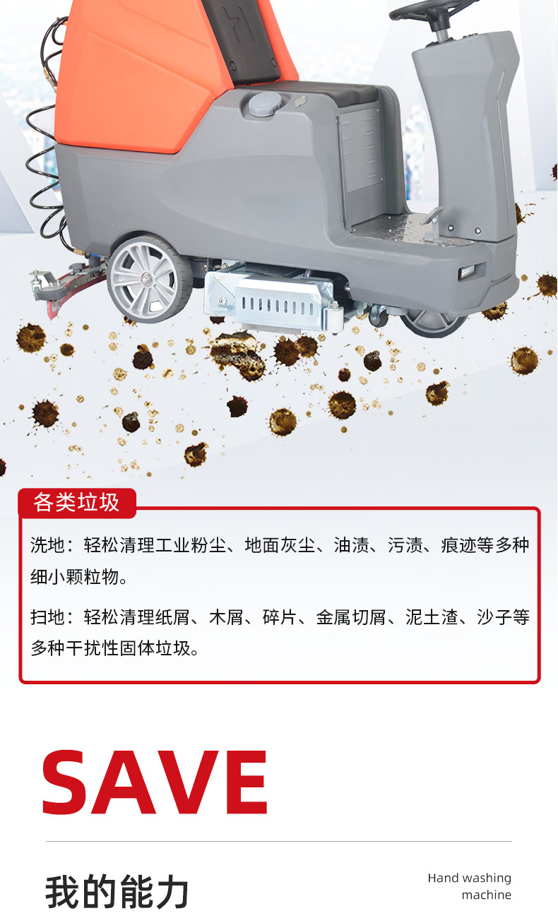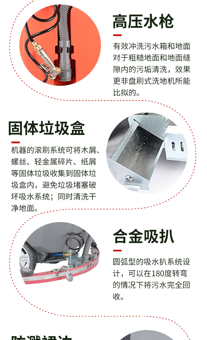 - 手推式洗地機洗地、吸干同步完成,同時將污水及其他污染源帶離現場,它的效率是人工清潔的15倍以上,人性化的設計,符合使用習慣,一鍵式操控,全自動清洗,操作人員僅需手推把握方向即可,無需具備專業知識即可輕松掌握,讓我們邁向智能化清潔之路變得簡單、可行,采用低噪音設計,將機器工作的負面影響降到最低,讓您白天、晚上都可安心工作,在收獲潔凈環境的同時,樹立起良好的工作形象,電池供電,讓它能夠自由無障礙行走,推到哪洗到哪,輕松自由