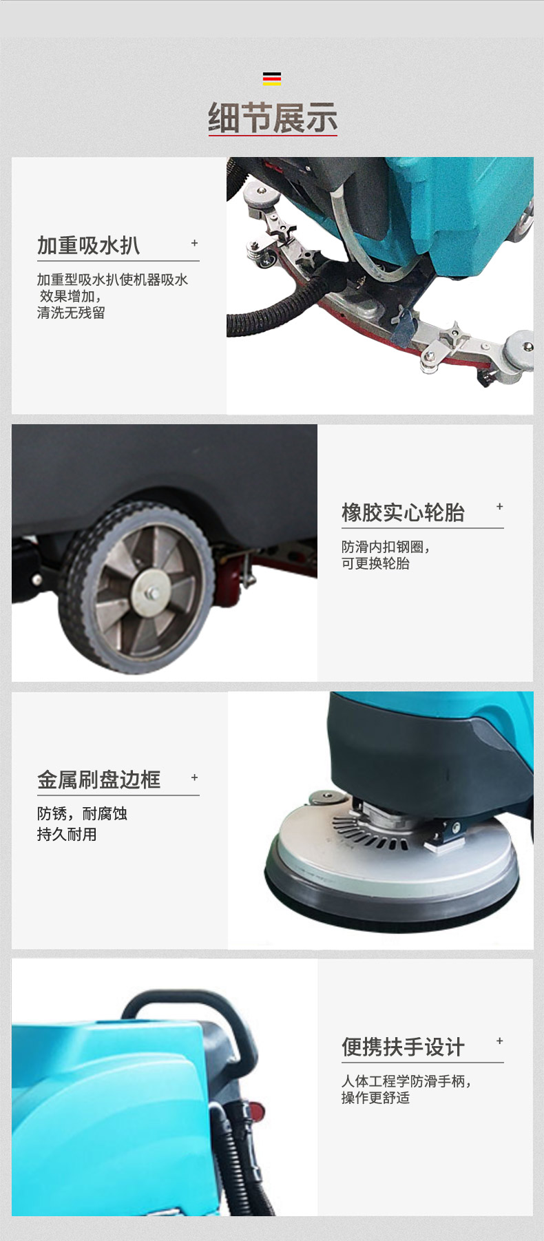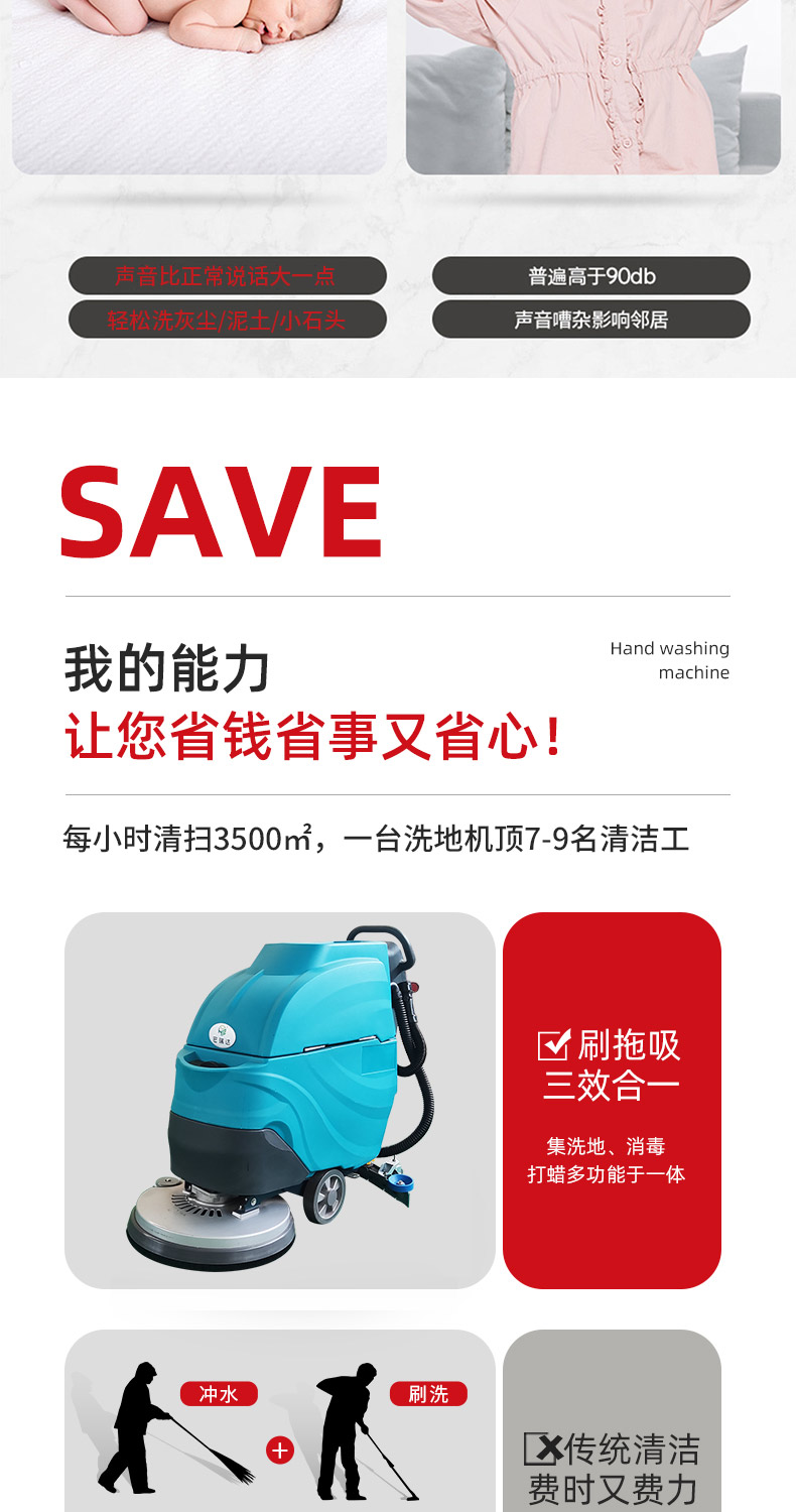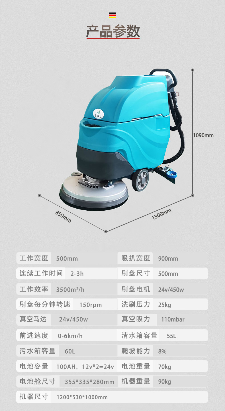 - HRD-X55手推式全自動洗地機清洗效率可達3000m2 h,充滿電可連續工作3-4小時,低噪音,操作簡單,清洗地面的同時吸干污水,并將污水帶離現場,具有低碳、節能、高效等優點,適用領域廣泛,車站、碼頭、機場、車間、倉庫、學校、醫院、飯店、賣場、寫字樓商廈、酒店賓館、公園廣場等場所都可以使用。適用于瓷磚地面、石料地面、環氧地面、金剛砂地面、水磨石地面、塑膠地板、玻化磚、PVC地面等硬質地面的表面油污等污垢清潔。