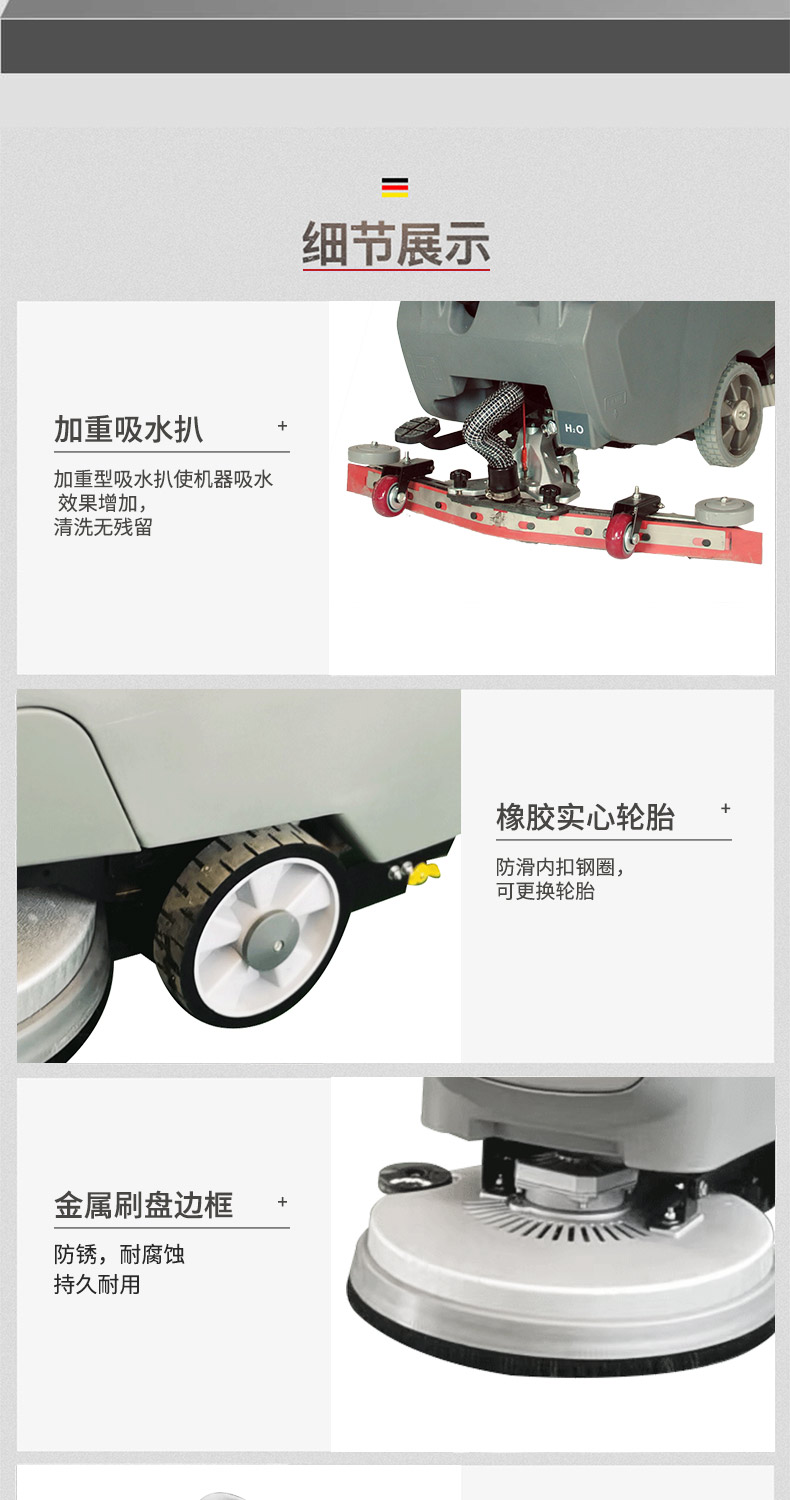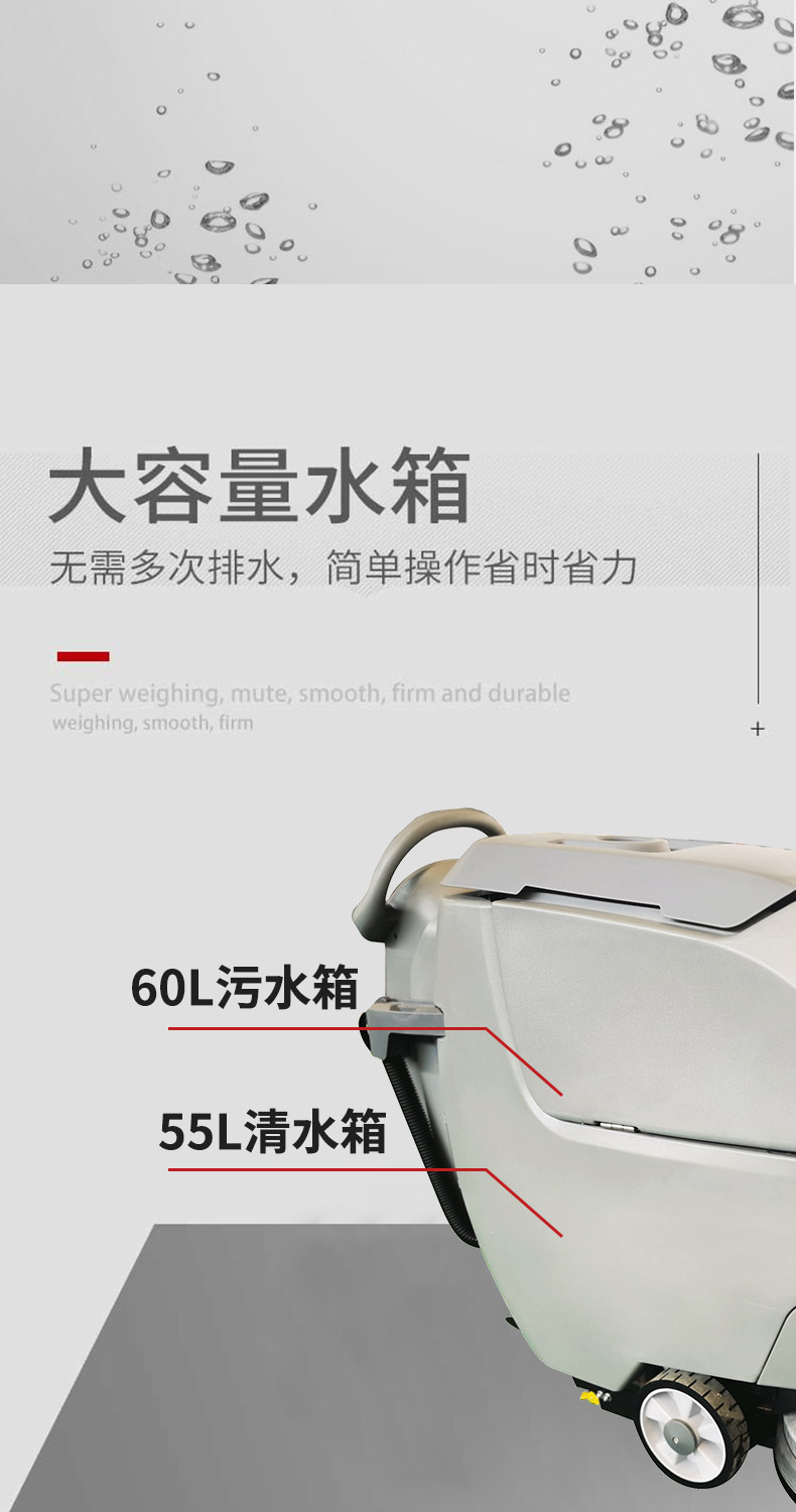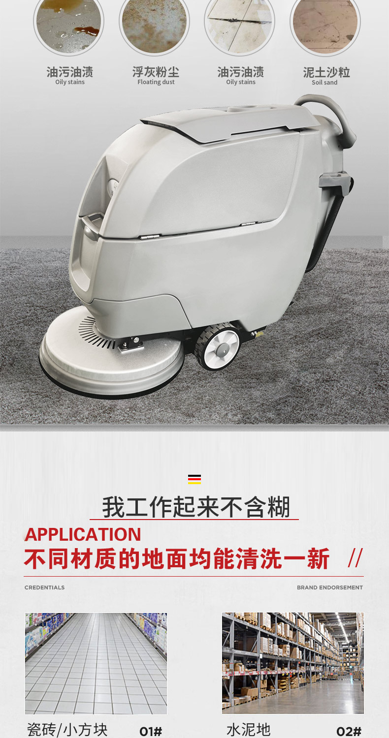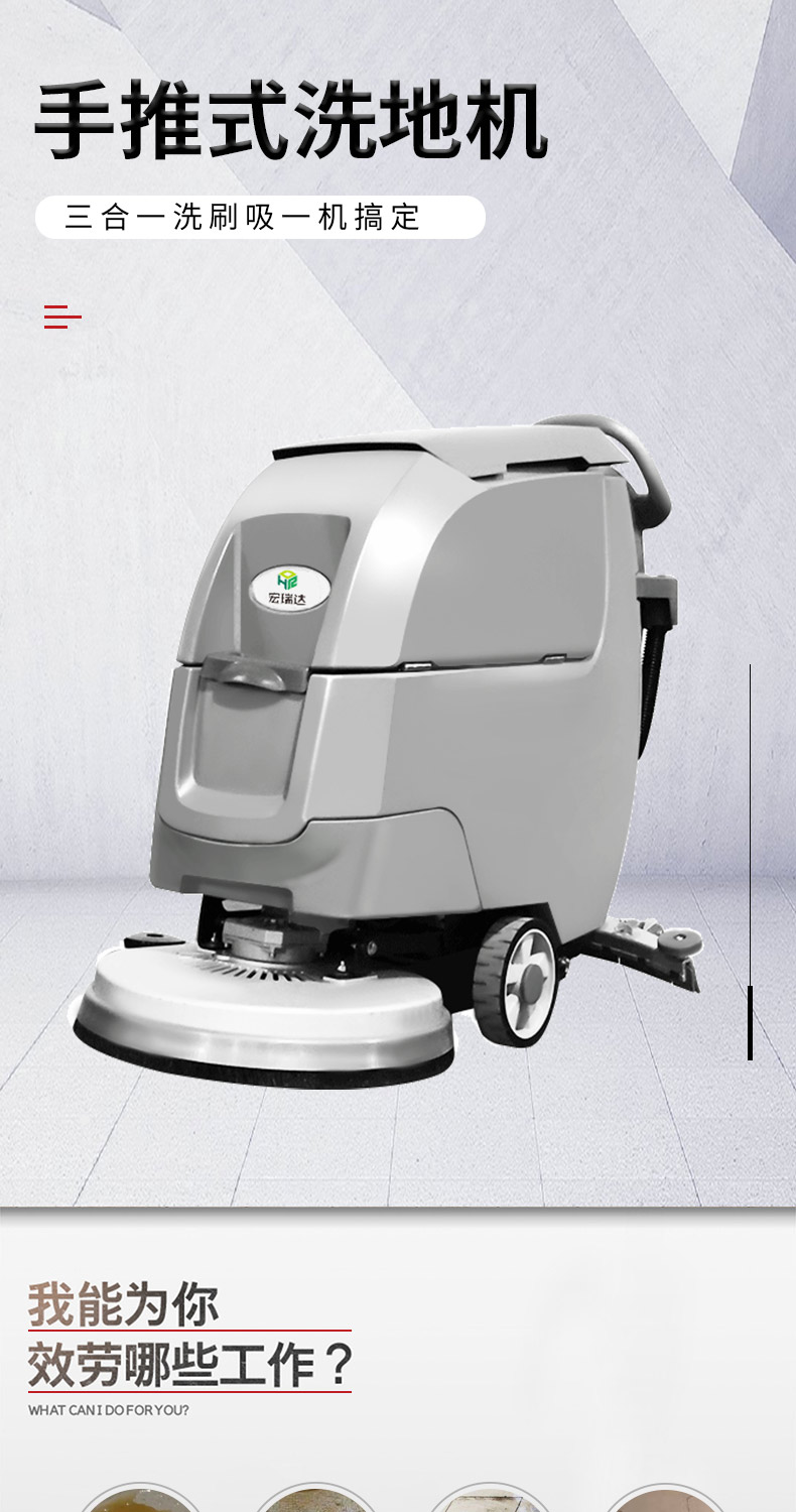 - HRD-X50手推式全自動(dòng)洗地機(jī)清洗效率可達(dá)3000m2 h,充滿電可連續(xù)工作3-4小時(shí),低噪音,操作簡(jiǎn)單,清洗地面的同時(shí)吸干污水,并將污水帶離現(xiàn)場(chǎng),具有低碳、節(jié)能、高效等優(yōu)點(diǎn),適用領(lǐng)域廣泛,車站、碼頭、機(jī)場(chǎng)、車間、倉(cāng)庫(kù)、學(xué)校、醫(yī)院、飯店、賣場(chǎng)、寫字樓商廈、酒店賓館、公園廣場(chǎng)等場(chǎng)所都可以使用。適用于瓷磚地面、石料地面、環(huán)氧地面、金剛砂地面、水磨石地面、塑膠地板、玻化磚、PVC地面等硬質(zhì)地面的表面油污等污垢清潔。