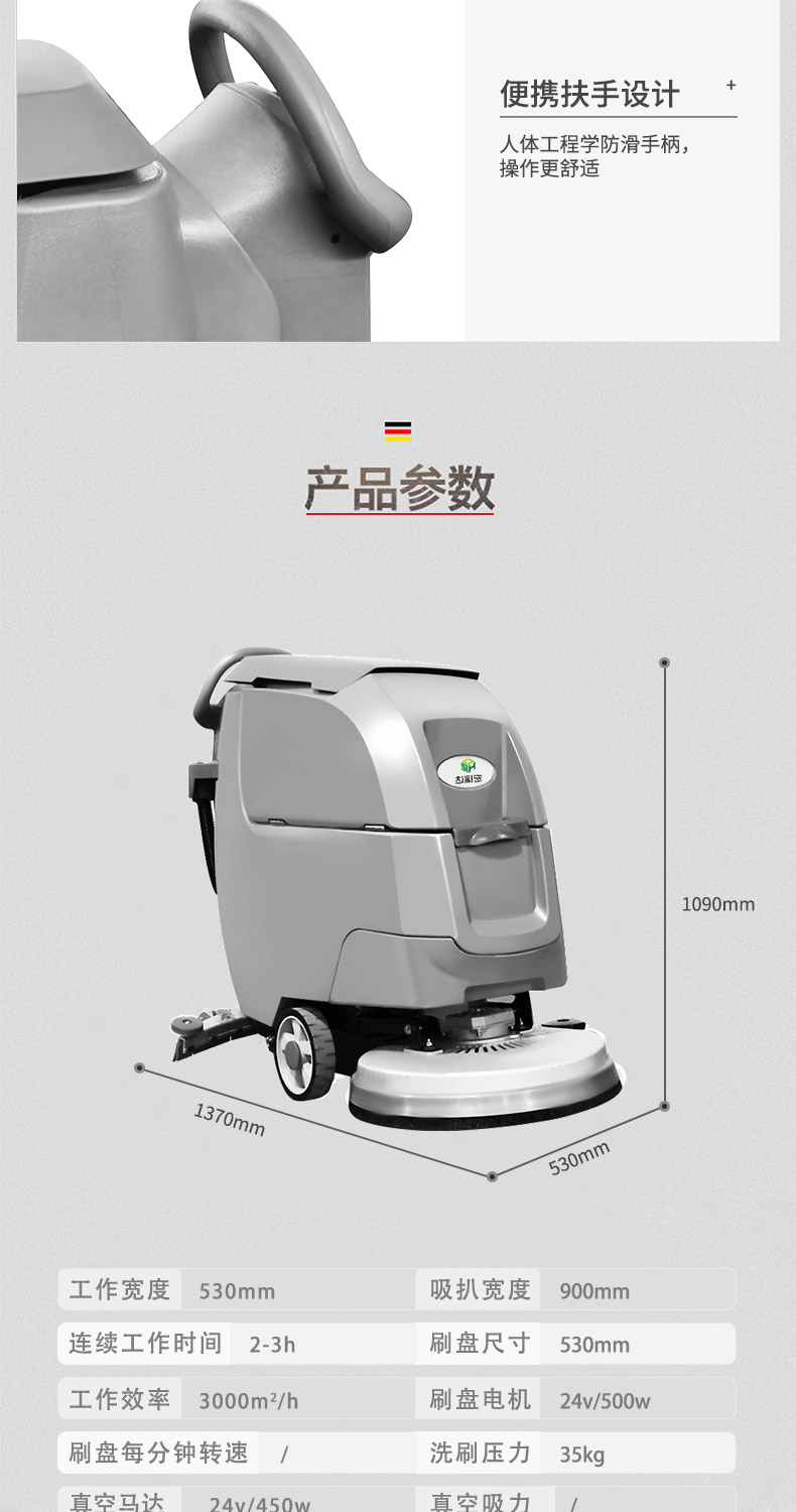 HRD-550手推式洗地機(jī)具有低噪音、操做簡(jiǎn)單、清潔效率高等優(yōu)點(diǎn),適用于車站、碼頭、機(jī)場(chǎng)、車間、倉(cāng)庫(kù)、學(xué)校、醫(yī)院、飯店、賣場(chǎng)、寫字樓商廈、酒店賓館、公園廣場(chǎng)等等多種場(chǎng)所,清洗地面的同時(shí)將污水帶離現(xiàn)場(chǎng),避免了二次污染和水漬的產(chǎn)生。隨著經(jīng)濟(jì)的飛速發(fā)展人們對(duì)環(huán)境的要求越來(lái)越高,設(shè)施與地面清潔是其中最重要的一環(huán),成為日常管理的重要部分,直接影響到商業(yè)活動(dòng)和人們的生活傳統(tǒng)的水桶+拖把早已跟不上時(shí)代,您需要專業(yè)的地面清潔設(shè)備,手推式洗地機(jī)!