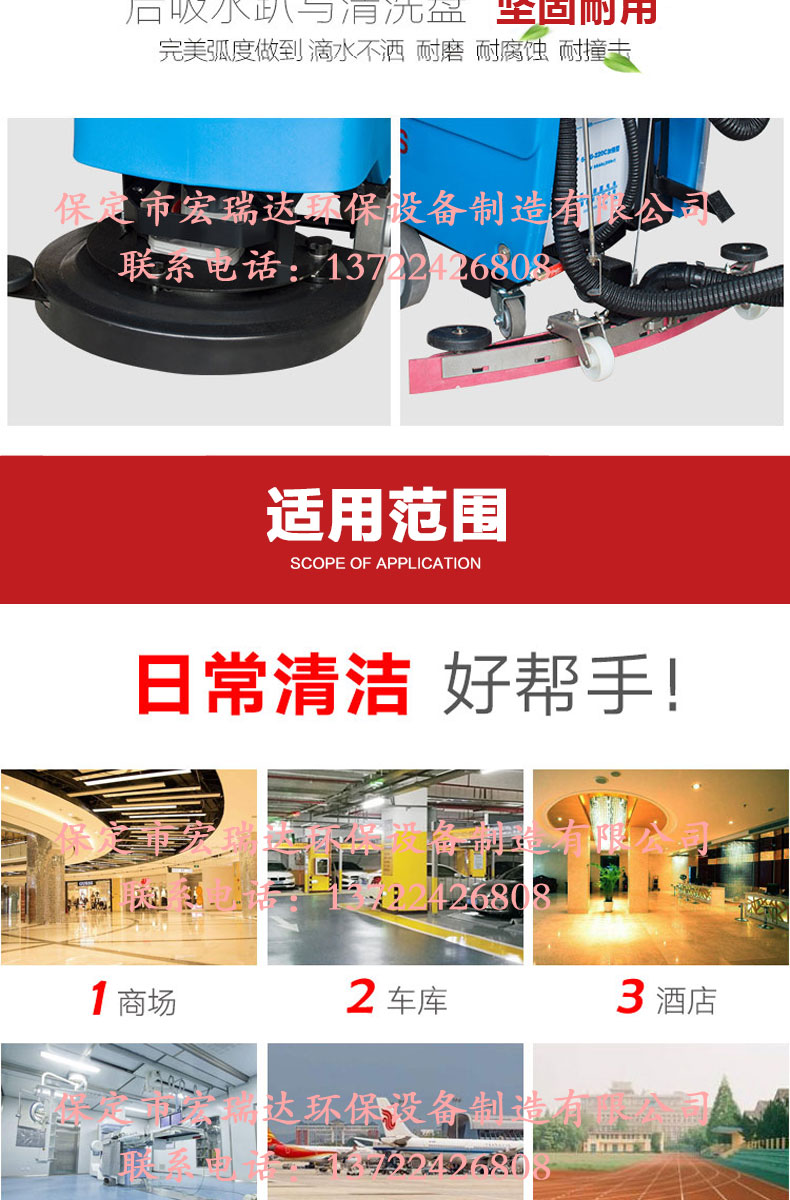 HRD-X50手推式全自動洗地機清洗效率可達3000m2 h,充滿電可連續工作3-4小時,低噪音,操作簡單,清洗地面的同時吸干污水,并將污水帶離現場,具有低碳、節能、高效等優點,適用領域廣泛,車站、碼頭、機場、車間、倉庫、學校、醫院、飯店、賣場、寫字樓商廈、酒店賓館、公園廣場等場所都可以使用。適用于瓷磚地面、石料地面、環氧地面、金剛砂地面、水磨石地面、塑膠地板、玻化磚、PVC地面等硬質地面的表面油污等污垢清潔。