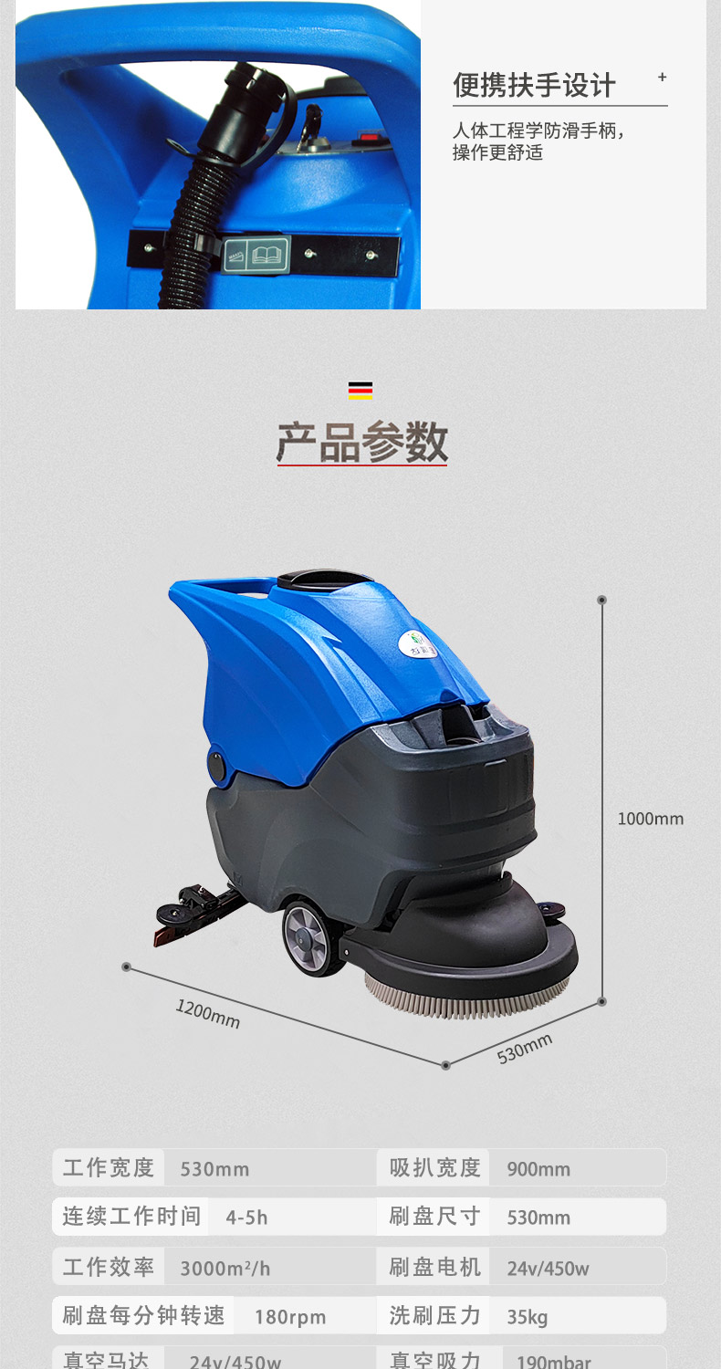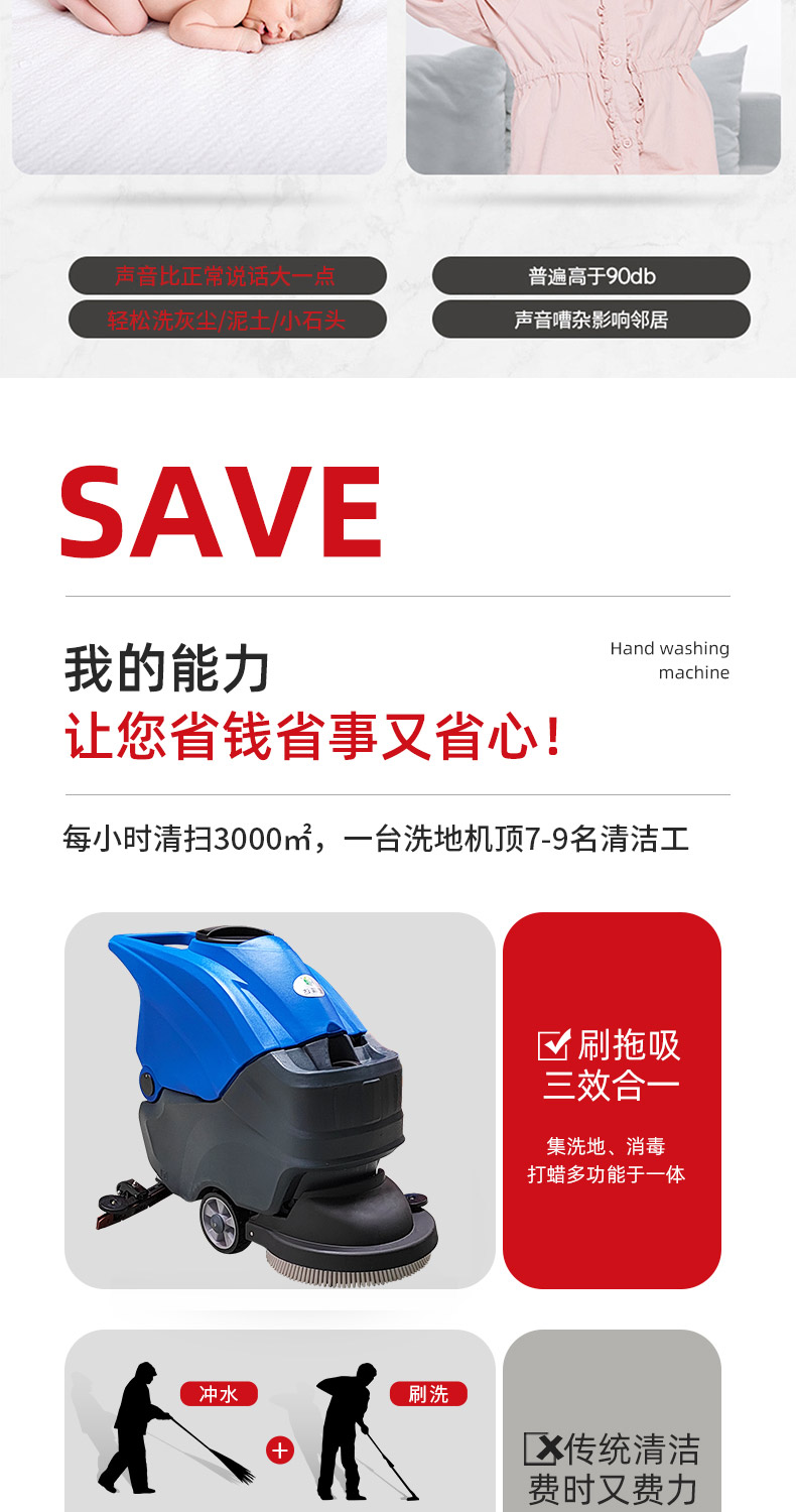 - HRD-550手推式洗地機具有低噪音、操做簡單、清潔效率高等優(yōu)點,適用于車站、碼頭、機場、車間、倉庫、學校、醫(yī)院、飯店、賣場、寫字樓商廈、酒店賓館、公園廣場等等多種場所,清洗地面的同時將污水帶離現(xiàn)場,避免了二次污染和水漬的產(chǎn)生。隨著經(jīng)濟的飛速發(fā)展人們對環(huán)境的要求越來越高,設(shè)施與地面清潔是其中最重要的一環(huán),成為日常管理的重要部分,直接影響到商業(yè)活動和人們的生活傳統(tǒng)的水桶+拖把早已跟不上時代,您需要專業(yè)的地面清潔設(shè)備,手推式洗地機!