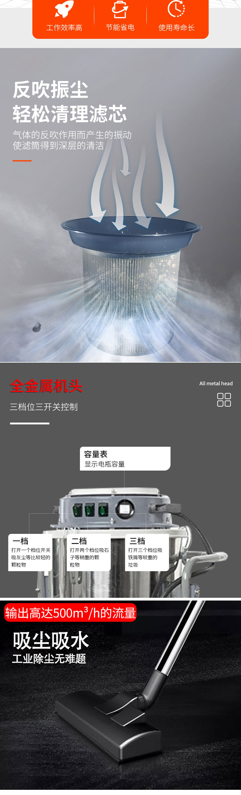 真空系列工業(yè)吸塵器是本公司專為工廠生產(chǎn)區(qū)內(nèi)含有大量微細(xì)粉塵的吸塵或輸送物料的清潔設(shè)備,相比其它種類的吸塵器,它的突出特點(diǎn)是配有自動(dòng)物理振塵清灰系統(tǒng),可停機(jī)后自動(dòng)清理濾筒,防止濾筒堵塞,保證設(shè)備的吸塵效果,保護(hù)電機(jī)免受過(guò)載。具有風(fēng)量大、壽命長(zhǎng)、噪音低、性能穩(wěn)定,可長(zhǎng)時(shí)間連續(xù)運(yùn)作等顯著特點(diǎn),能合理的配套于切削、打磨、鉆孔,印染,制藥,陶瓷制作等行業(yè)的設(shè)備的清潔工作,是市場(chǎng)上性能最完備,應(yīng)用最為廣泛的吸塵器,既能回收固體顆粒物,又能凈化含塵氣體的多功能產(chǎn)品。